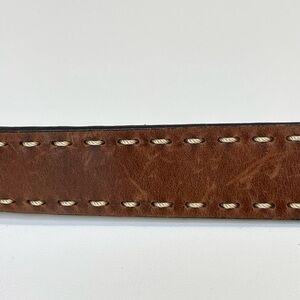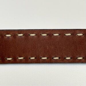 Brown Leather Stitched Belt Medium Classic Unisex Medium
