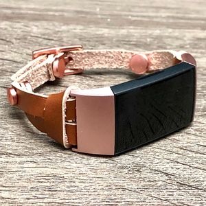 Brown Leather Strap Rose Gold Fitbit Charge 3 Band