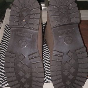 Brown Nubuck Leather with Smooth Grain Leather, Anti-Slip Bottoms, Non-Steel Toe. Worn but well kept.