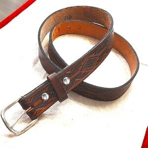 Brown Leather Tooled Men's Belt with Silver Buckle Size 40