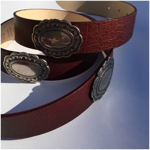 Brown Leather With Silver Medallions & Hammered Buckle