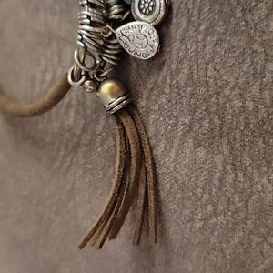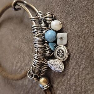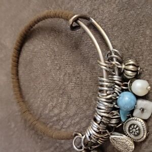 Brown Leather Wrapped Charm Bangle Western Cowgirl Bracelet