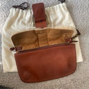 UGG Australia Leather Shoulder Bag Sherpa Lined Purse Cognac Brown Buckle