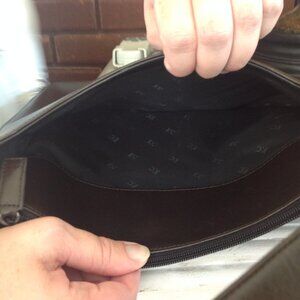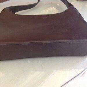 2.25"D 10.5"W 8" T from center of handle to bottom of purse. Pockets on both sides and a Zippered Center compartment. There are a couple of minor scuffs on the leather. Other than the scuffs it's in perfect condition