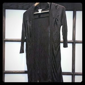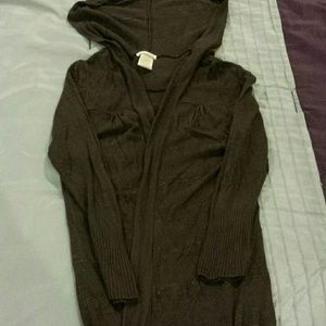 Thin, lightweight summer cardigan in brown. 3/4 length sleeves with hood.
