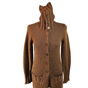 Brown Long Mohair Blend Cardigan With Button Front & Pockets Womens Size 6/8