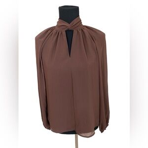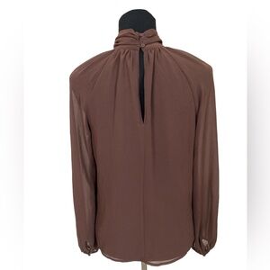 Brown Long Sleeve Chiffon Mock Neck Blouse