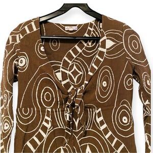 Stylish brown long sleeve dress featuring unique geometric patterns. Perfect for any occasion.