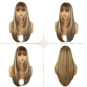 This long straight layered wig with bangs can better shape your face,the layered design makes the overall look more natural and not heavy,the black mixed brown color is universal for daily use and suitable for various occasions