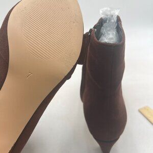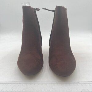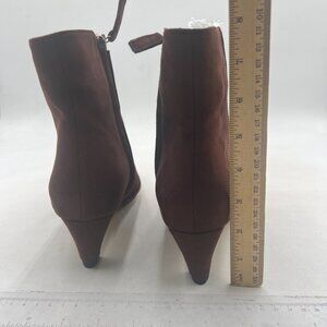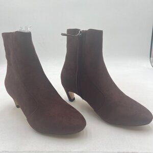Brown Low Kitten Heel Ankle Boots Closed Toe Side Zipper Short Booties Casual Business Office Date Party Shoes