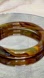 This round, single-piece bangle is fashioned from translucent brown glass with swirling bands of caramel, honey, and darker mocha tones. Measuring about 8 inches in inner circumference, the bracelet features a smooth, polished finish that allows light to pass through the varying shades and highlight their rich, marbled effect. Its gently rounded profile sits comfortably on the wrist, making it both an eye-catching and versatile accessory—whether worn alone or layered with other bangles.