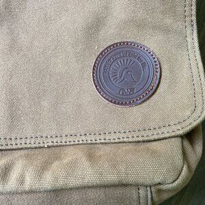 The perfect bag for a student or professor - or a cool hipster vibing around a cafe town :) excellent condition canvas bag with only the spot on it as pictured. It's the perfect size for an everyday messenger bag - fits the laptop as pictured and there's plenty of room beyond that for books, notebooks, etc.