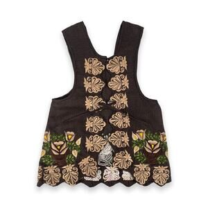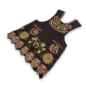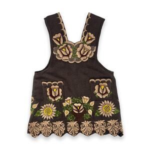 Brown Mexican Embroidered Apron – Premium Cotton Blend Apron with Beige Floral