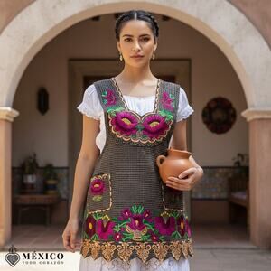Each apron is handmade by skilled artisans, which means that slight variations in measurements and designs are part of its authentic charm. With rich embroidery that stands out, these aprons are perfect for everyday cooking, festive gatherings, or as a cultural gift that reflects true Mexican artistry.