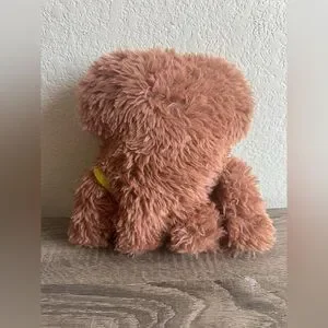 Cute brown plush monster with a soft pink accessory. Safe, cuddly design kids will love. Plush features a removable pink companion and cheerful details. Easy to hug and display, this brown and pink stuffed toy adds charm to playtime.
