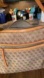 Stylish brown monogram Dooney and Bourke shoulder bag with tan accents. Features a front zipper pocket and adjustable strap. Callouts are some minor stains but really unnoticeable unless looking for them this bag is a 16.5” X 10”.