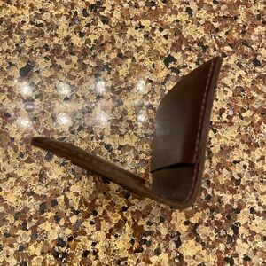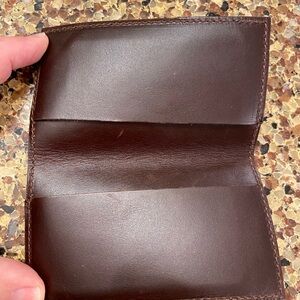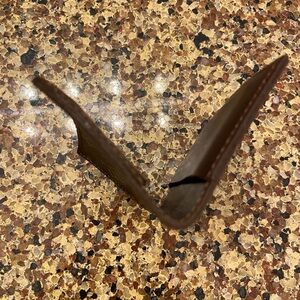 Small card wallet features a monogram design. Crafted in a rich brown color, it adds a touch of luxury to your everyday essentials.