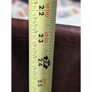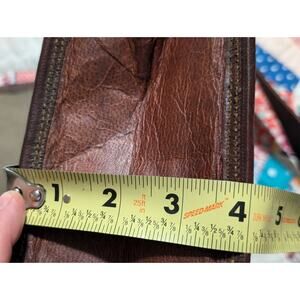 Brown No Fabric Content Canvas Lined Shoulder Strap Brief Bag. I don't believe this is leather, maybe vegan leather, but I can't be positive. Pre-owned, it is in overall great condition with a very clean inside. Measures 15" in length, 12.25" height, 4" depth and has a 22.5" strap drop. Foldover front flap. Back zip, zip under flap and plenty of pockets inside. Pale green canvas lining.