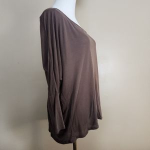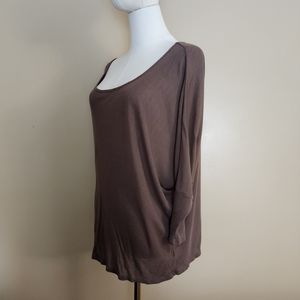◽️ Brown relaxed fit off-the-shoulder tunic tee shirt