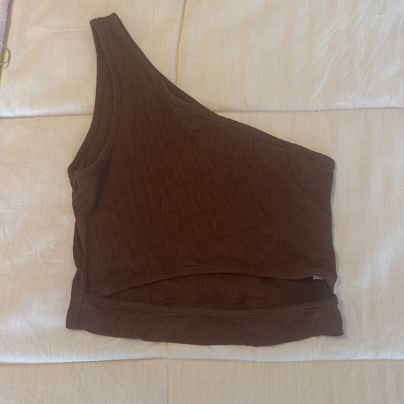Brown One-Shoulder Ribbed Top