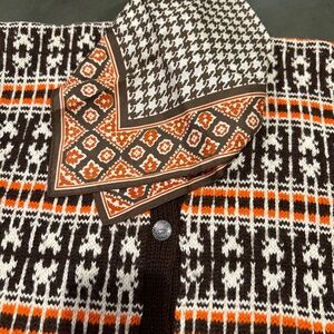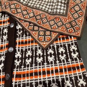Co-ordinates perfectly with Orange, Brown, natural Cream Handknit Norwegian Vinkng Inspired Cardigan Sweater in Separate Listing.