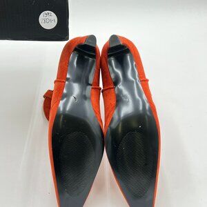 Brown Orange Square Toe Comfort Kitten Low Heel Ankle Boot Pull On Bootie Winter Faux Suede Dressy Shoe