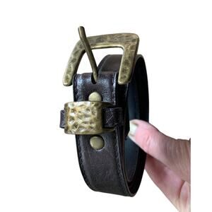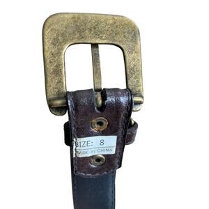 Brown PVC Leather Belt Brass Textured Buckle with 5 Holes Size 8 - C4