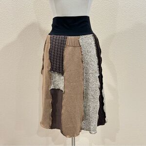Brown Patchwork A-Line Sweater Skirt Size Medium