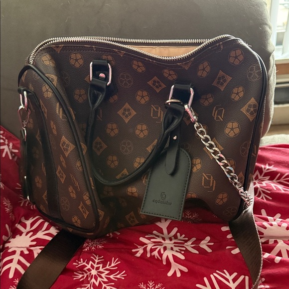 Stylish brown handbag with a unique pattern, perfect for any occasion.