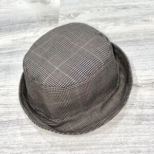 Brown Plaid Check Fedora Trilby Hat with Red Satin Lining