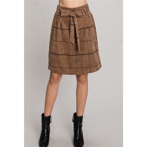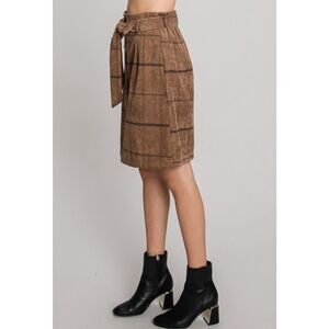 Brown Plaid Corduroy tie waist skirt