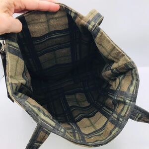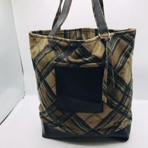 Brown Plaid Cotton w Faux Leather Accents and Pockets Basic Market Tote Bag