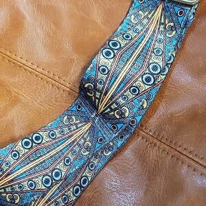 Brown Pleather Shoulder Bag Pattern 44" Adjustable Strap 13" x 9" x 3.5"