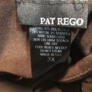 Brown 3X plus size top by Pat Rego. Dark brown sleeveless top is super soft and comes with an attached sheer layer on top and large copper colored sequins around the v-neck in front.