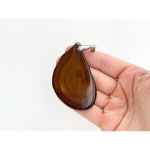 Brown Polished Agate Crystal Freeform Shaped Large Silver Toned Vintage Pendant