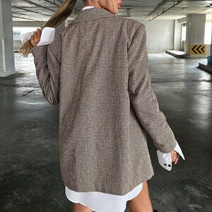 Brown Preppy Womens Lapel Neck Flap Detail Single Button Blazer