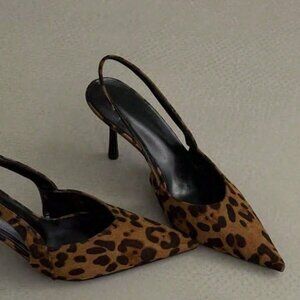 Elevate your style with these women's sandals, featuring a pointed toe, slingback design, and high heel. Crafted in a rich brown color, these court pumps are perfect for making a statement.