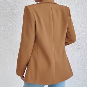Brown Preppy Womens Solid Shawl Collar Blazer