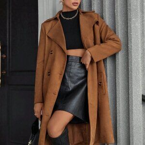 Brown Preppy Womens Suede Fleece All-Match Elegant Mid-Length Windbreaker Jacket