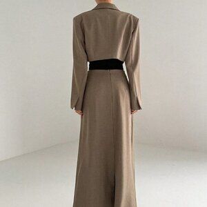 Brown Preppy Womens Women's Solid Color Slim Fit Double Breasted Blazer