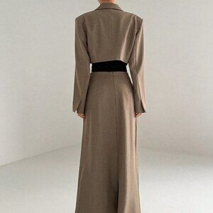 Brown Preppy Womens Women's Solid Color Slim Fit Double Breasted Blazer