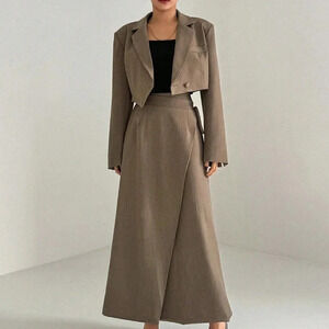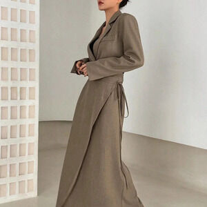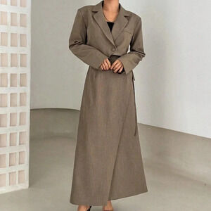 Brown Preppy Womens Women's Solid Color Slim Fit Double Breasted Blazer