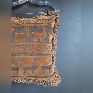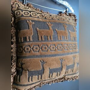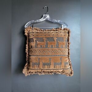 Brown Raised Texture Embroidered Llama Alpaca Fringe Throw Accent Pillow 16x16