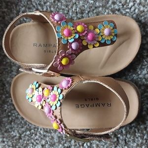 Brown Rampage Sandals. Flowers. Velcro strap. Wore once