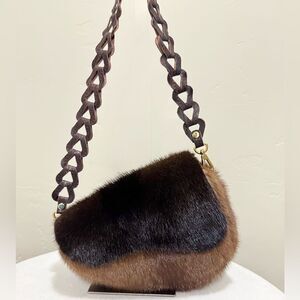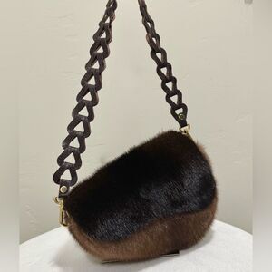 Brown Real Mink Fur Handmade Asymmetric Saddle Bag/Bumbag/Crossbody & 2 Straps