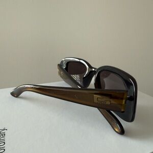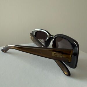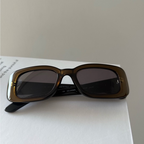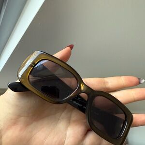 Stylish brown/green rectangular sunglasses. Perfect for any occasion.