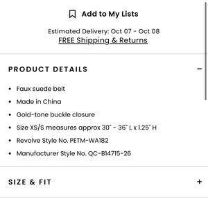 Never worn light brown belt with gold buckle from Revolve. Size XS/S measures approx 30" - 36" L x 1.25" H