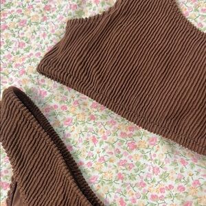 Stylish brown ribbed bikini set perfect for a chic beach look. Comfortable and trendy design.
