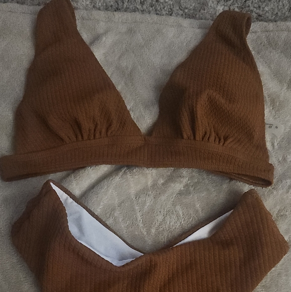 Brown Ribbed Bikini Set