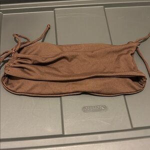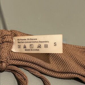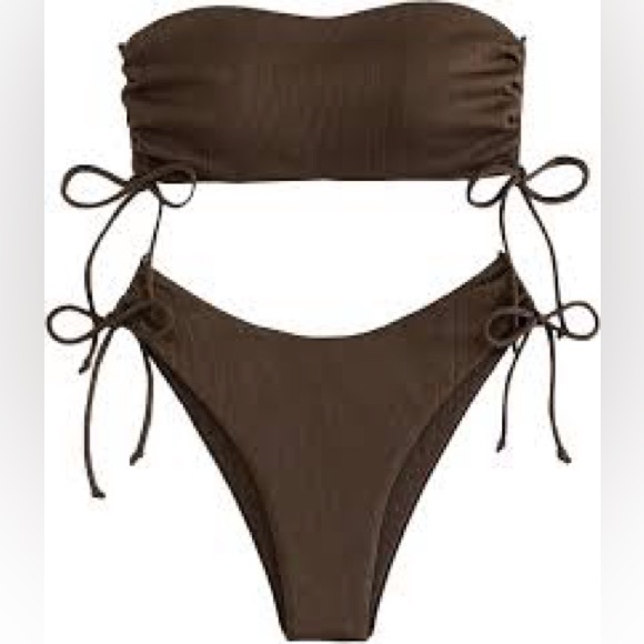 With pads Stylish brown ribbed bikini set perfect for a day at the beach. Features adjustable side ties for a custom fit.